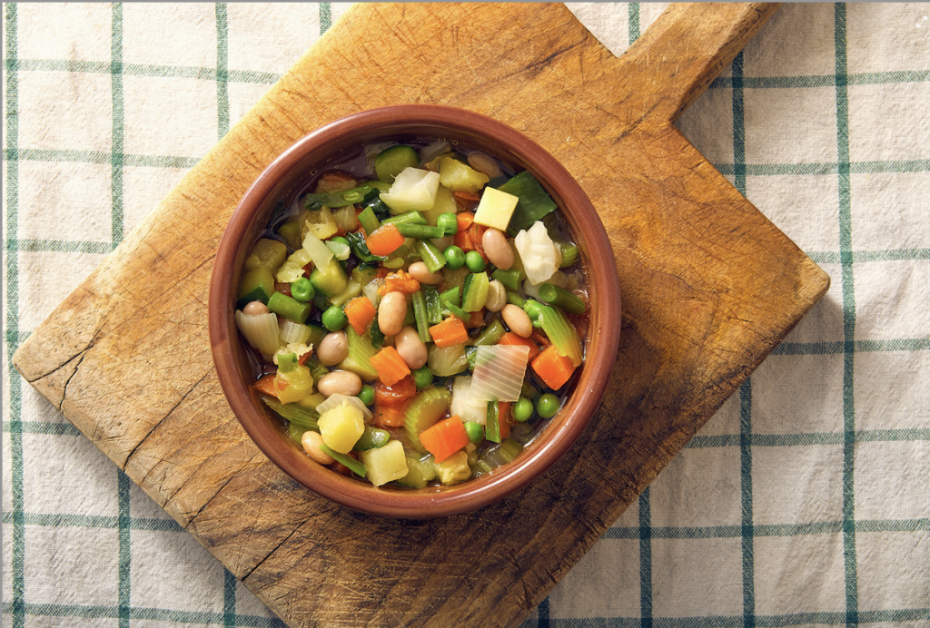Heat a large pot with water. Season with salt, pepper and one vegetable bouillon cube. Cut it up, boil it up, and you’ve got “Old Soup.”